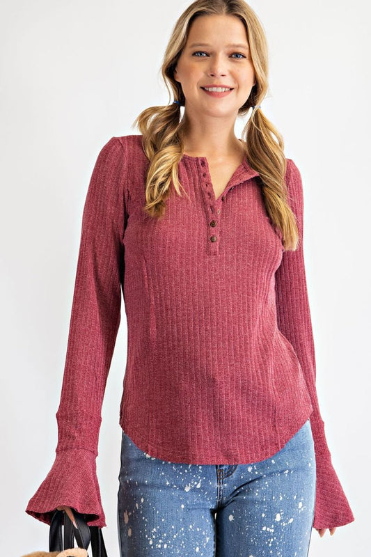 Sold out2 Tone Ribbed Henley Top